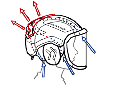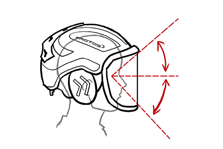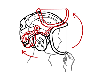 funktionsweise eines arbeitshelms mit wenigen strichen visualisieren und deutlich machen.